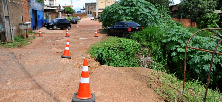 “A rua toda ainda não desabou por causa de um pedaço de concreto que está segurando o solo. Do jeito que está isso aqui acaba representando um perigo não só para quem passa com veículos, mais também para as pessoas que trafegam pela rua. Para evitar um acidente grave bloqueamos a via para preservar a segurança das pessoas”, explicou David do Vale, agente de trânsito da Semtran.