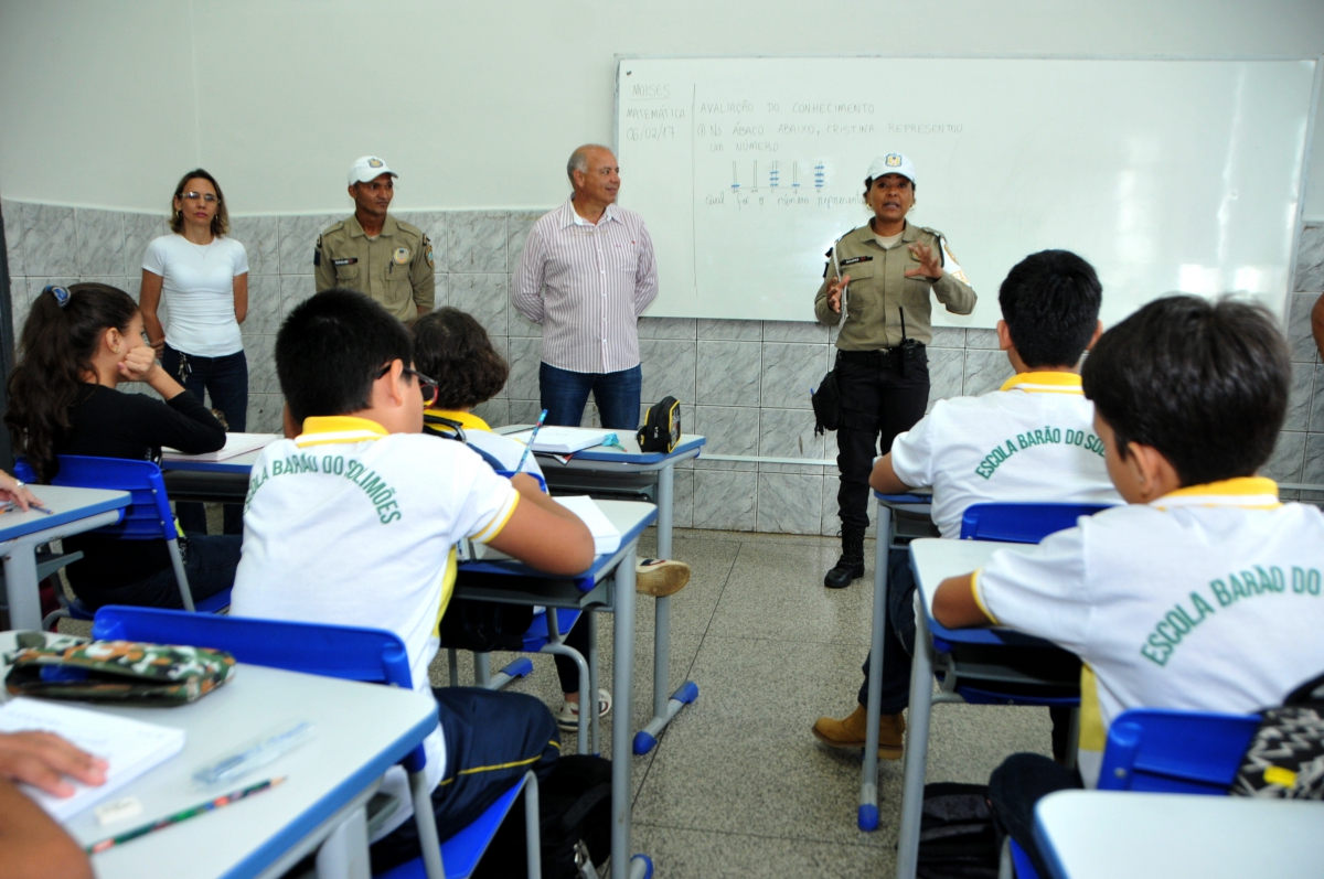 Depois que estavam em sala de aula, estudantes da Barão do Solimões foram visitados por Torres, acompanhado dos agentes Magna e Carvalho, que lembraram a importância de sua atuação junto aos pais e responsáveis quanto à sinalização, o não uso de telefone ao volante, imprescindível uso de cinto de segurança, além do respeito à sinalização.