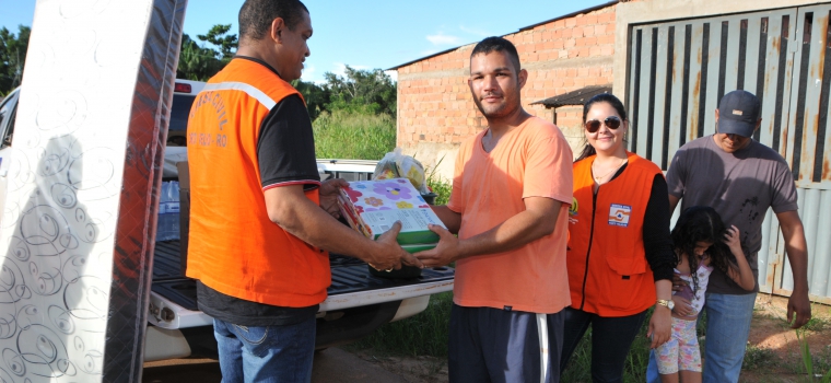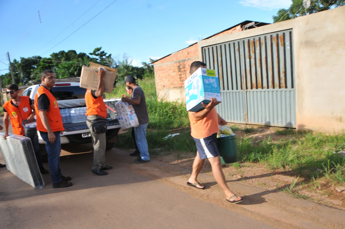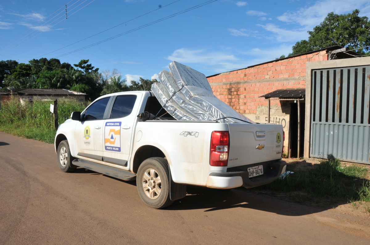 Uma família que teve a casa destruida pela enxurrada da forte chuva na semana passada, recebeu ajuda da prefeitura de Porto Velho na tarde desta quinta (2). Foram entregues pela Defesa Civil Municipal dez fardos de água mineral, três colchões de solteiro, mosquiteiros, papel higiênico, ventilador e um kit de limpeza composto por água sanitária, balde, rodo e pano de chão, dentre outros.