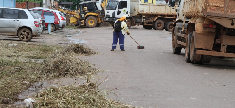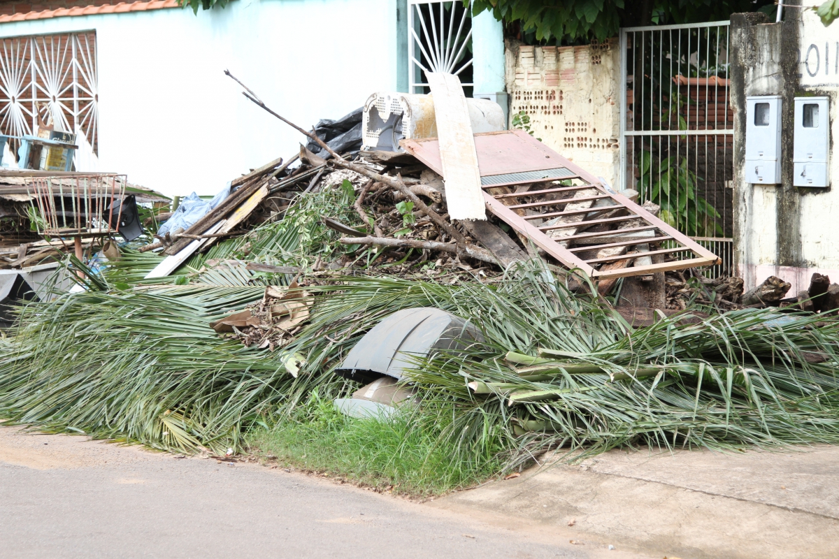 O trabalho, que está se repetindo em vários bairros porto-velhenses, inclui varrição, capina, raspagem, roçagem e coleta de entulhos. O trabalho de limpeza geral, segundo Maria de Fátima Sobrinho, da Semusb, deve ser concluir no sábado. De um lado, homens e mulheres com vassoura, enxadas, pás e ciscadores. De outro, tratores e caçambas compõem o cenário que era observado pelos moradores depois de retirarem seus entulhos – troncos e galhos de árvores, sofás, máquinas de lavar, geladeiras e pneus velhos etc..
