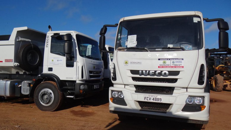 Por força de convênio com o Fundo para Infraestrutura de Transportes e Habitação (Fitha) do governo estadual, a Secretaria Municipal de Agricultura e Abastecimento (Semagric) recebeu um caminhão pipa e dois caminhões basculantes que serão usados na recuperação das estradas que são de responsabilidade do município.