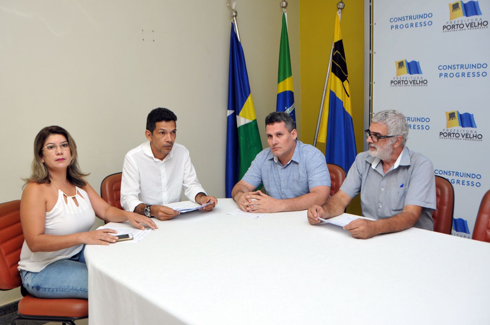 O secretário municipal de Educação (Semed), Zenildo de Souza e o chefe de gabinete da Prefeitura, advogado, Breno Mendes, estiveram reunidos na tarde desta terça-feira com representantes das três empresas prestadoras do serviço de transporte escolar rodoviário na capital: José Antonio Xavier, da Amazon Tur; Roniele Cabral, da Rondonorte e Clebia Pantoja, da Flecha Transportes, para por fim a suspensão do transporte que tem atingido diretamente sete mil crianças.