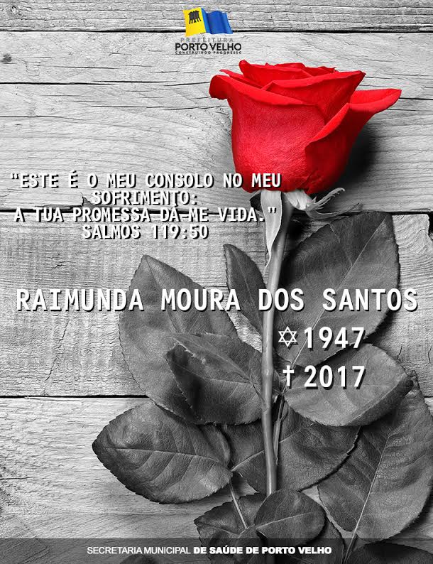 É com profunda consternação e pesar que informamos o falecimento de nossa servidora Raimunda Moura dos Santos. Raimunda era lotada na Policlínica Dra. Ana Adelaide, E serviu este município com amor e dedicação por 27 anos. Casada há 35 anos com Ademir Alves da Silva, era mãe de Tânia Maria, Luis Alberto, César Henrique, Jorge Luis, Alberto e Vanessa.