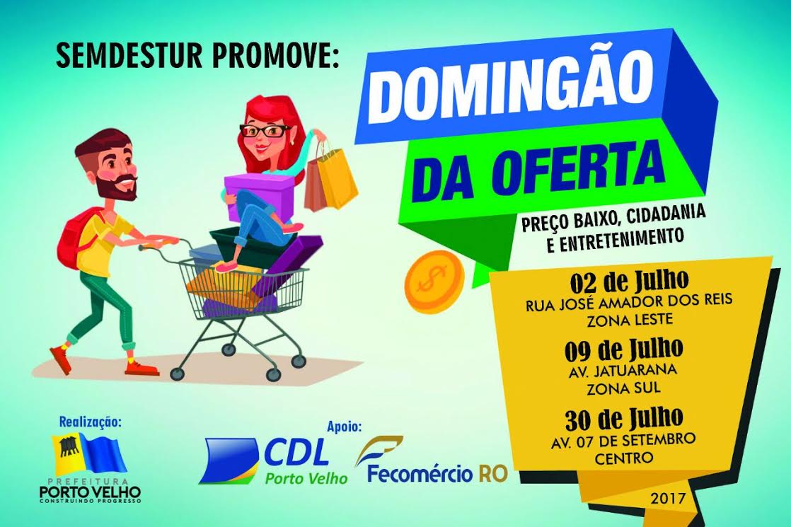Depois do sucesso da primeira edição do Domingão da Oferta, chegou a vez do centro comercial da zona sul. O evento realizado pela Prefeitura de Porto Velho em parcera com a Fecomércio e CDL, visa aquecer o comércio em toda cidade, atraindo consumidores para a avenida Jatuarana, neste domingo, das 8h as 18h.
