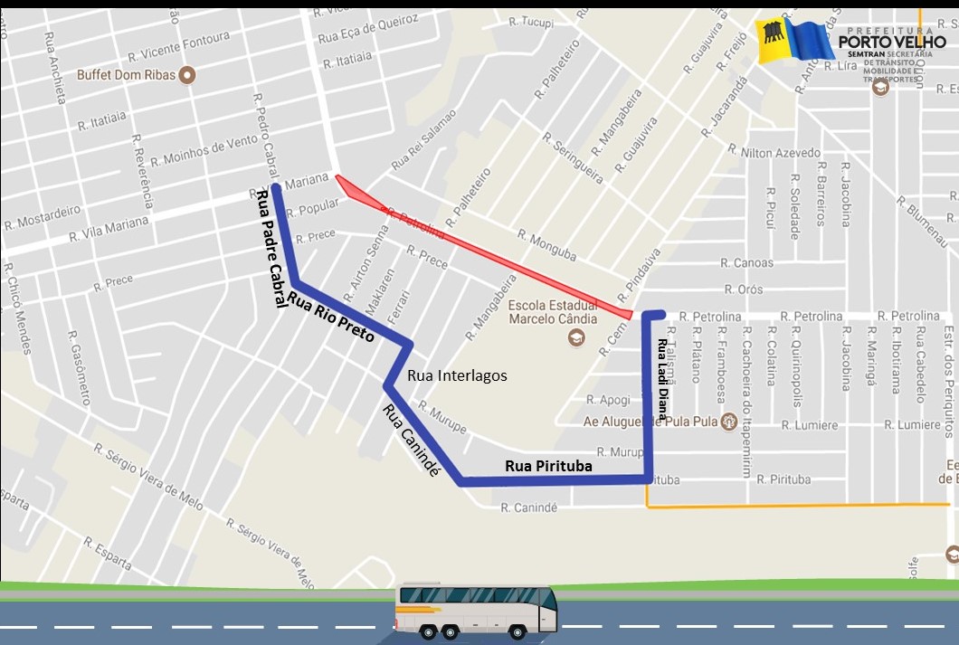 Também em função de obras na rua Petrolina, entre as ruas Vila Mariana e Ladi Diana, as linhas de ônibus São Francisco via Ronaldo Aragão, Ulysses via JK, Tancredo Neves, Ulysses via Tancredo Neves e São Francisco, foram alteradas provisoriamente até o dia 2 de agosto, conforme data prevista pela empresa responsável da obra. Veja no mapa abaixo como ficará o percurso do ônibus;