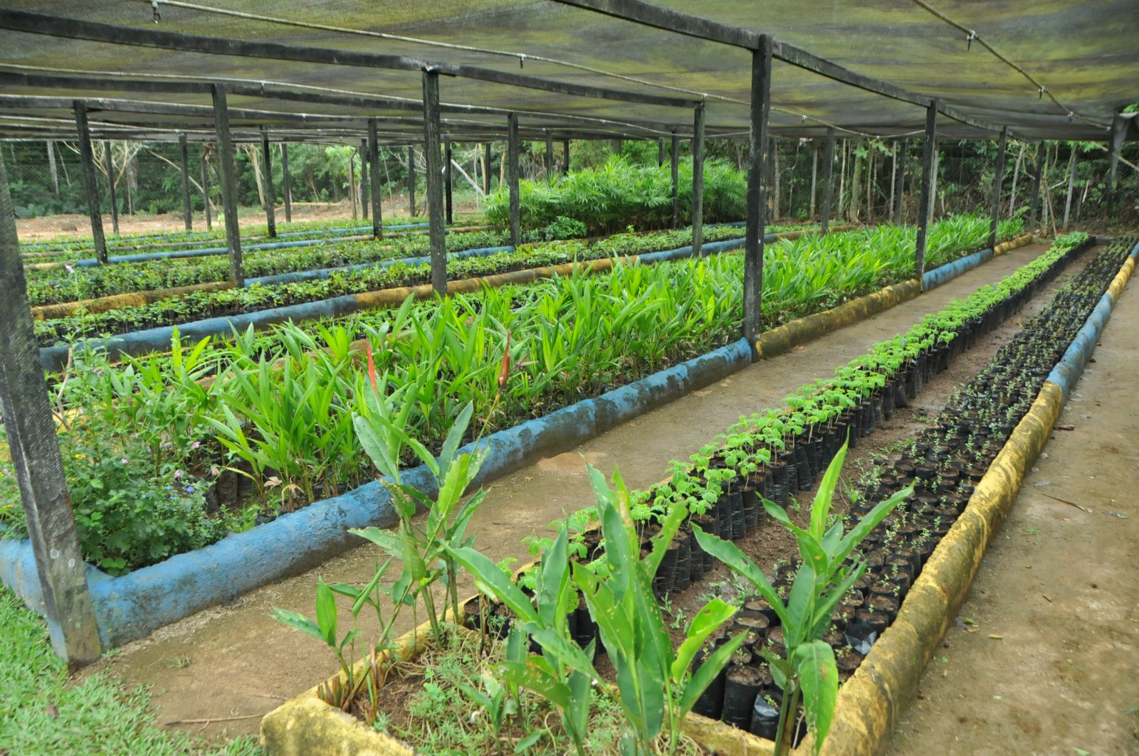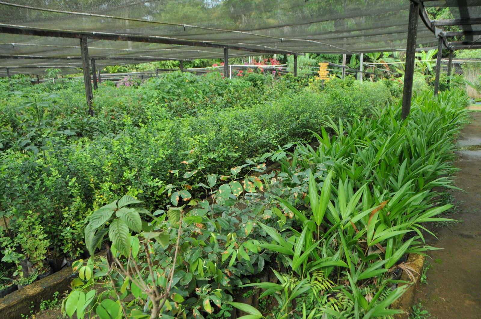 Também são produzidas espécies nativas da floresta amazônica como o tauari, cedro, mogno, virola, seringueira — árvores em extinção proibidas de corte — e ainda o cacau do mato, o açaí e o patoá, que fazem parte da família das palmeiras, além de plantas para ornamentação de residências e de jardins.