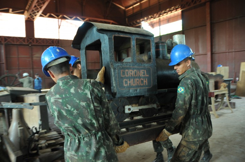 Na manhã desta quarta-feira (23) a equipe da Fundação Cultural junto com a Associação dos Ferroviários e a 5º Batalhão de Engenharia e Construção (BEC) fizeram a devolução do acervo histórico ferroviário para os galpões da Estrada de Ferro Madeira Mamoré, após três anos guardados em um galpão na Zona Leste da capital.