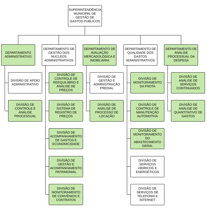 Art. 1°. À Superintendência de Gestão de Gastos Públicos – SGP, órgão de gestão governamental compete o planejamento, normatização, controle e coordenação das atividades-meio, relacionadas à qualidade das despesas de natureza administrativa e à logística, patrimonial e de manutenção das unidades administrativas do Poder Executivo, aí incluídos todos os órgãos que compõem a Administração Pública Municipal Direta, e ainda: