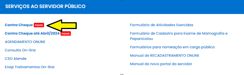 Na aba SERVIÇOS AO SERVIDOR PÚBLICO, estarão disponíveis para acesso as informações financeiras até Abril de 2024 e, a partir de Maio de 2024.