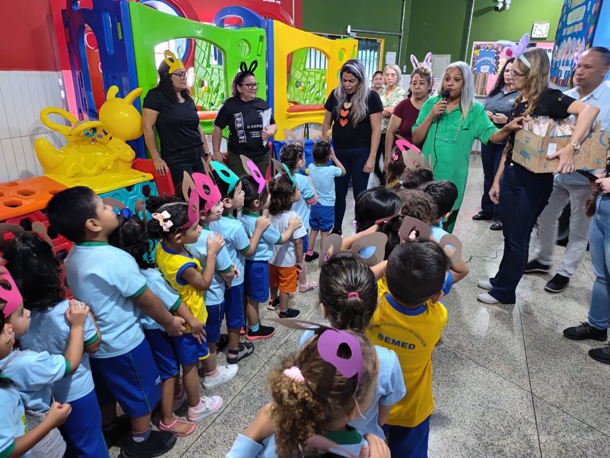 Na manhã desta terça-feira (15), a equipe da Biblioteca Municipal Francisco Meirelles esteve na escola Pequeno Polegar, na capital, onde promoveram atividades do projeto “Páscoa na Biblioteca”, que contou com a participação de 40 crianças. Contação de história, pintura no rosto e distribuição de sacolinhas com bombons e chocolates fizeram parte desta ação. As atividades também acontecem no período da tarde com a mesma equipe e programação.