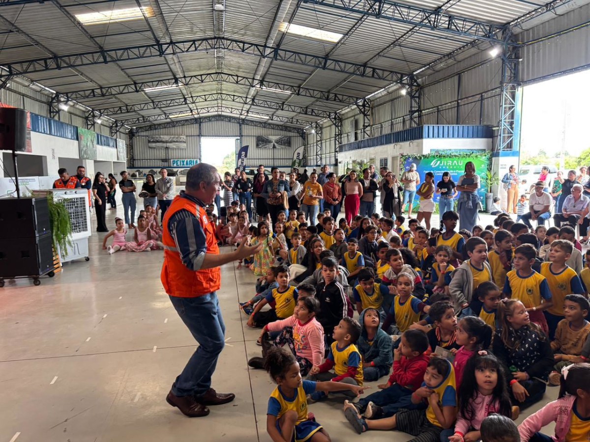 Durante a feira, o coordenador da Defesa Civil Municipal, Marcos Berti, atuando como multiplicador educacional, pontuou sobre as consequências das queimadas, em como a fumaça altera a saúde das crianças, adultos e idosos.