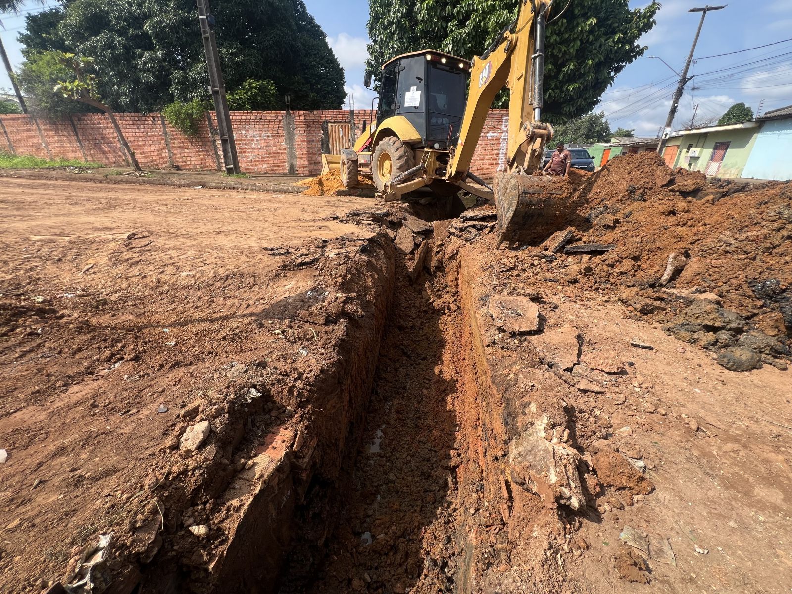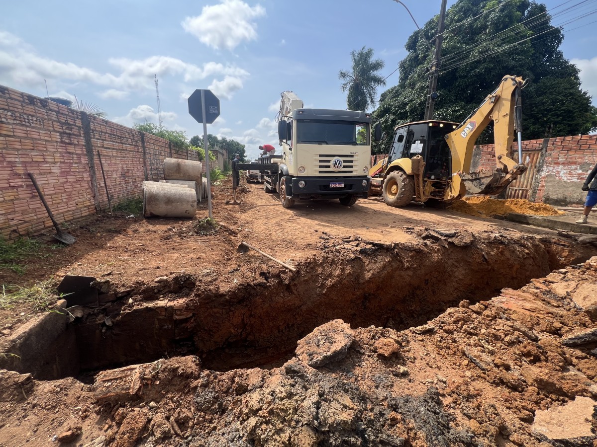 Nove novas manilhas estão sendo instaladas para substituir a estrutura antiga, que já não atendia ao volume de água que passa pelo local. As equipes da Seinfra realizaram a abertura da área onde estavam as manilhas comprometidas e iniciaram a remoção do material deteriorado. As manilhas antigas estavam danificadas e entupidas por barro, bloqueando a passagem da água e contribuindo para os alagamentos.